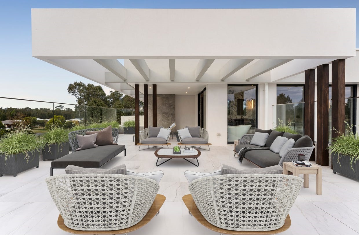 Task and ambient lighting, heat strips and weatherproof power extend alfresco use into cooler nights in North Curl Curl, so guests cook, dine.